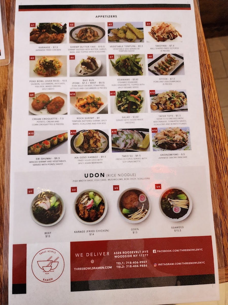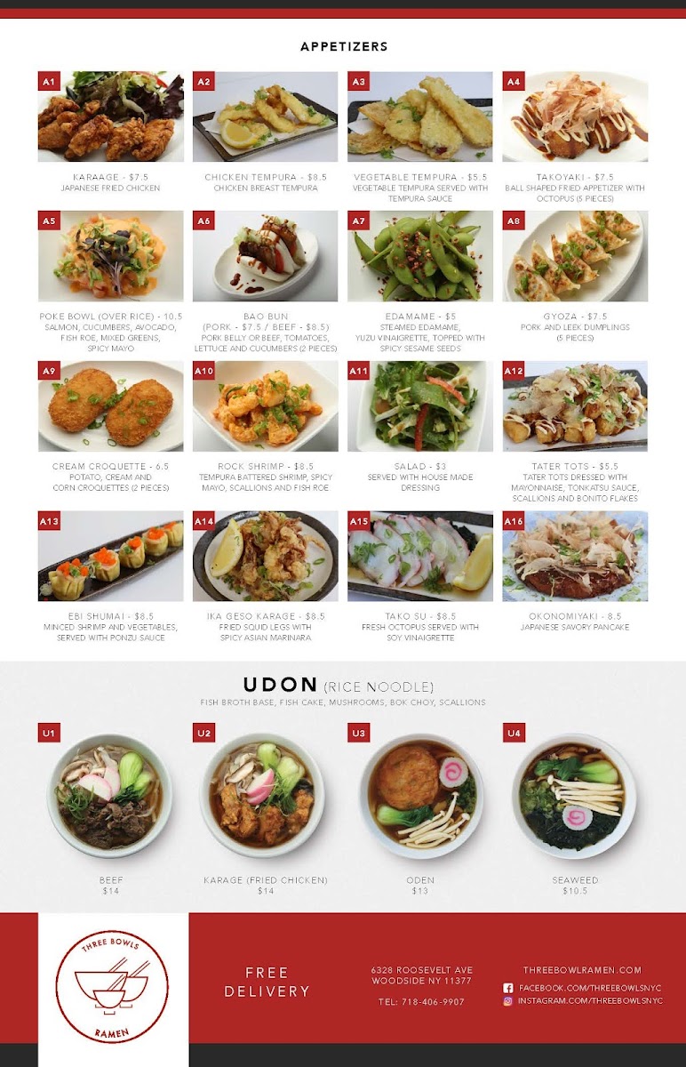 Welcome to Three Bowls Ramen, a delightful Japanese restaurant nestled in Woodside, NY. This eatery is renowned for its vibrant menu that features authentic ramen alongside a selection of tantalizing side dishes. Guests rave about the rich flavors found in their miso ramen and karaage, which consistently impress with both taste and presentation.