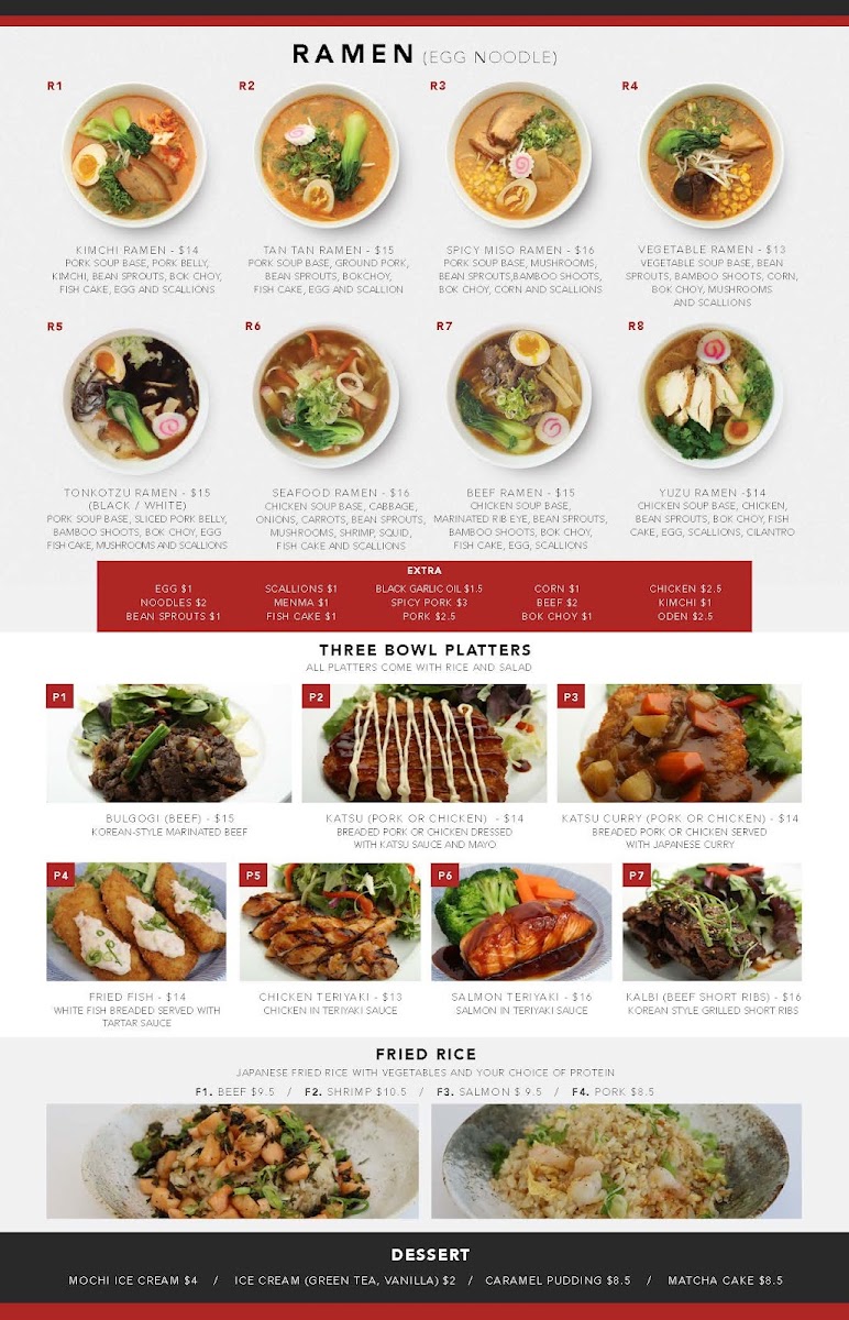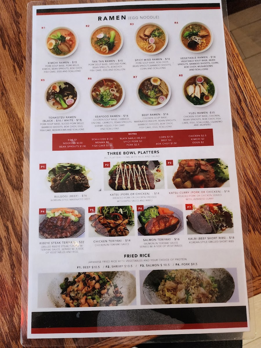In addition to classic ramen, you can savor specialty fried rice variations, such as the shrimp or pork fried rice, both priced at $11.50. The menu also offers refreshing SOJU options, perfect for complementing your meal. Don't miss out on hearty sides like kimchi and miso soup.